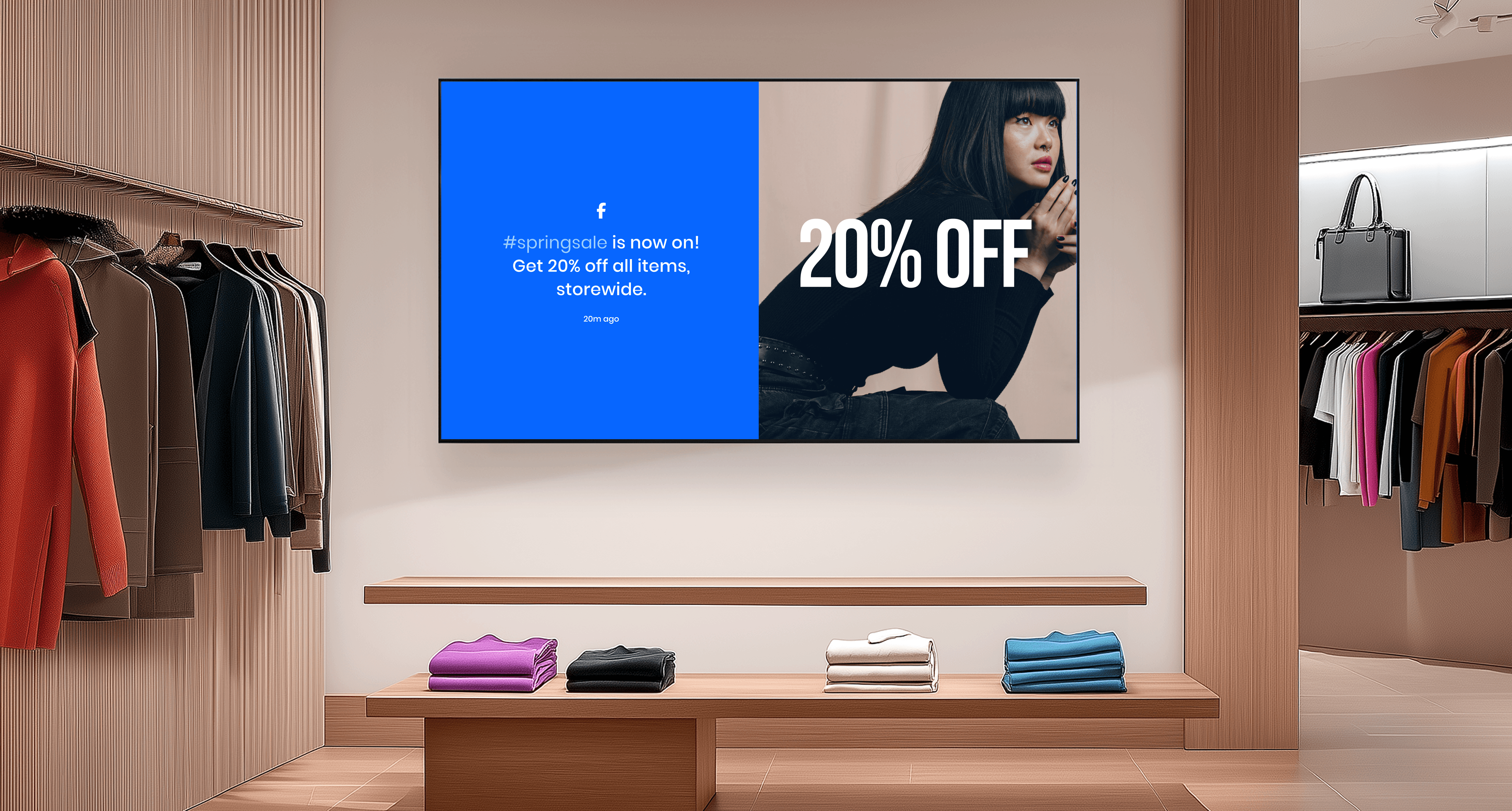 Display your Facebook visuals perfectly in any orientation. Whether you mount your screen vertically or horizontally, your content adjusts to fit.