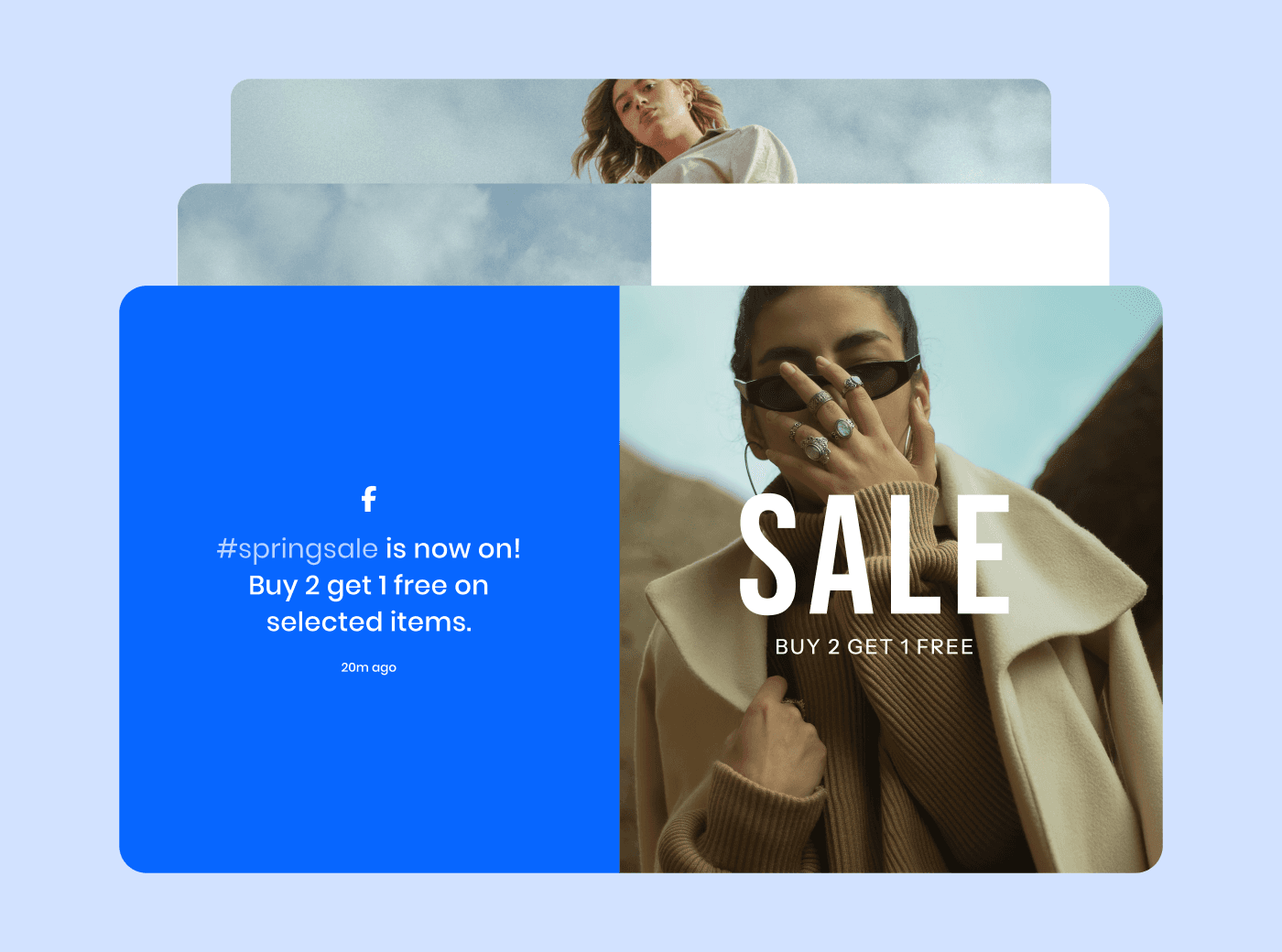 Add custom overlays like promos, QR codes, or updates over your Facebook content without hiding your main feed.