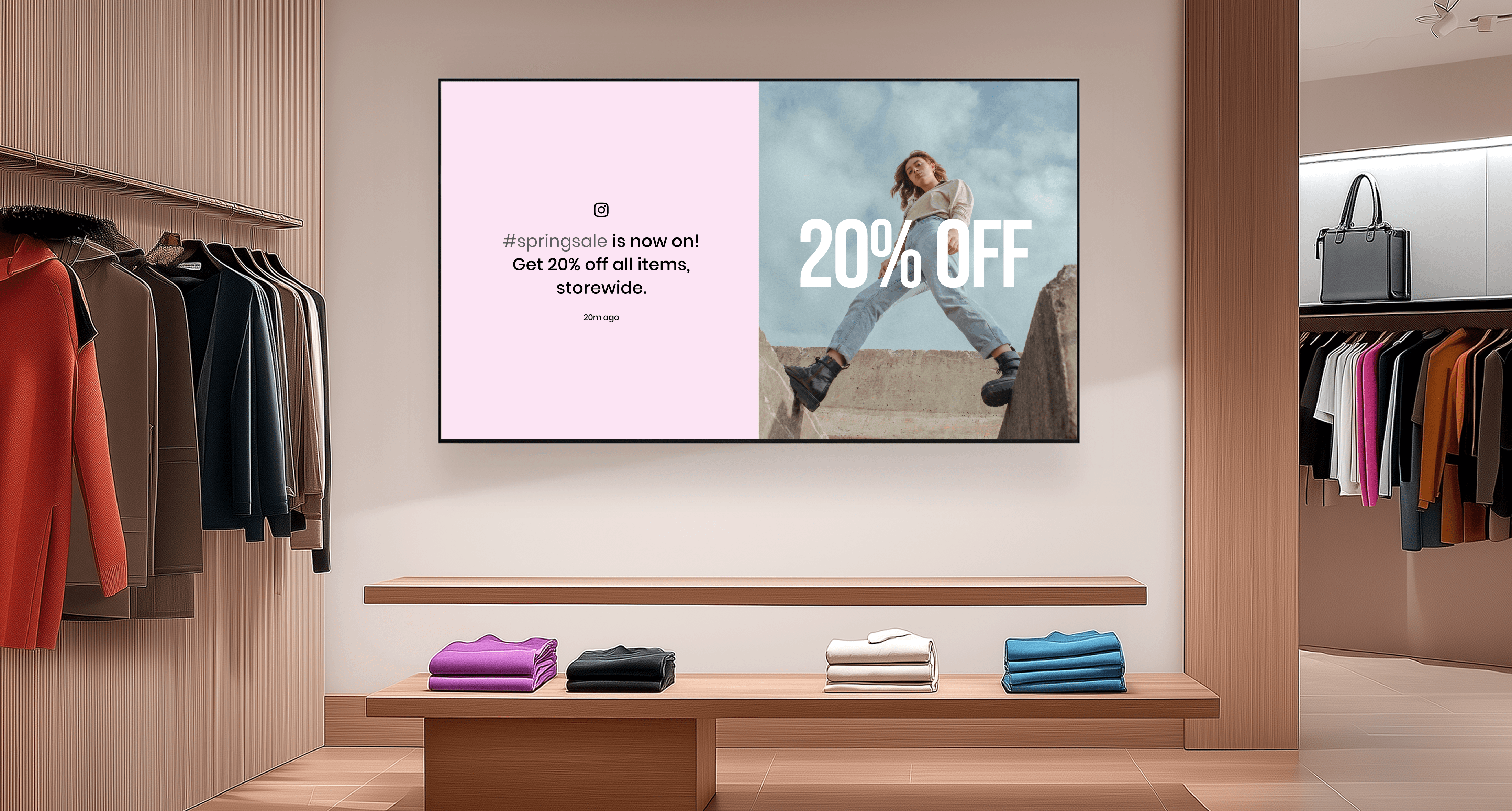 Pull in live content from Instagram and other platforms. Automatically showcase posts, reels, or hashtags to keep your social media signage current and visually engaging.